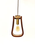 Inspired by classic Western design, this pendant reimagines the iconic stirrup as a sculptural light fixture. Crafted from rich walnut wood and detailed with brass accent hardware, elevated by a supple leather strap that adds both warmth and authenticity. Suspended from cloth-covered pendant cord, it brings a unique mix of rustic charm and refined craftsmanship to any space.
