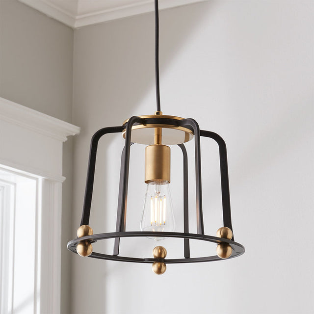 Tate - Jack Stand Table Lamp (Rustic w/ Blue Stripe Ticking Fabric)