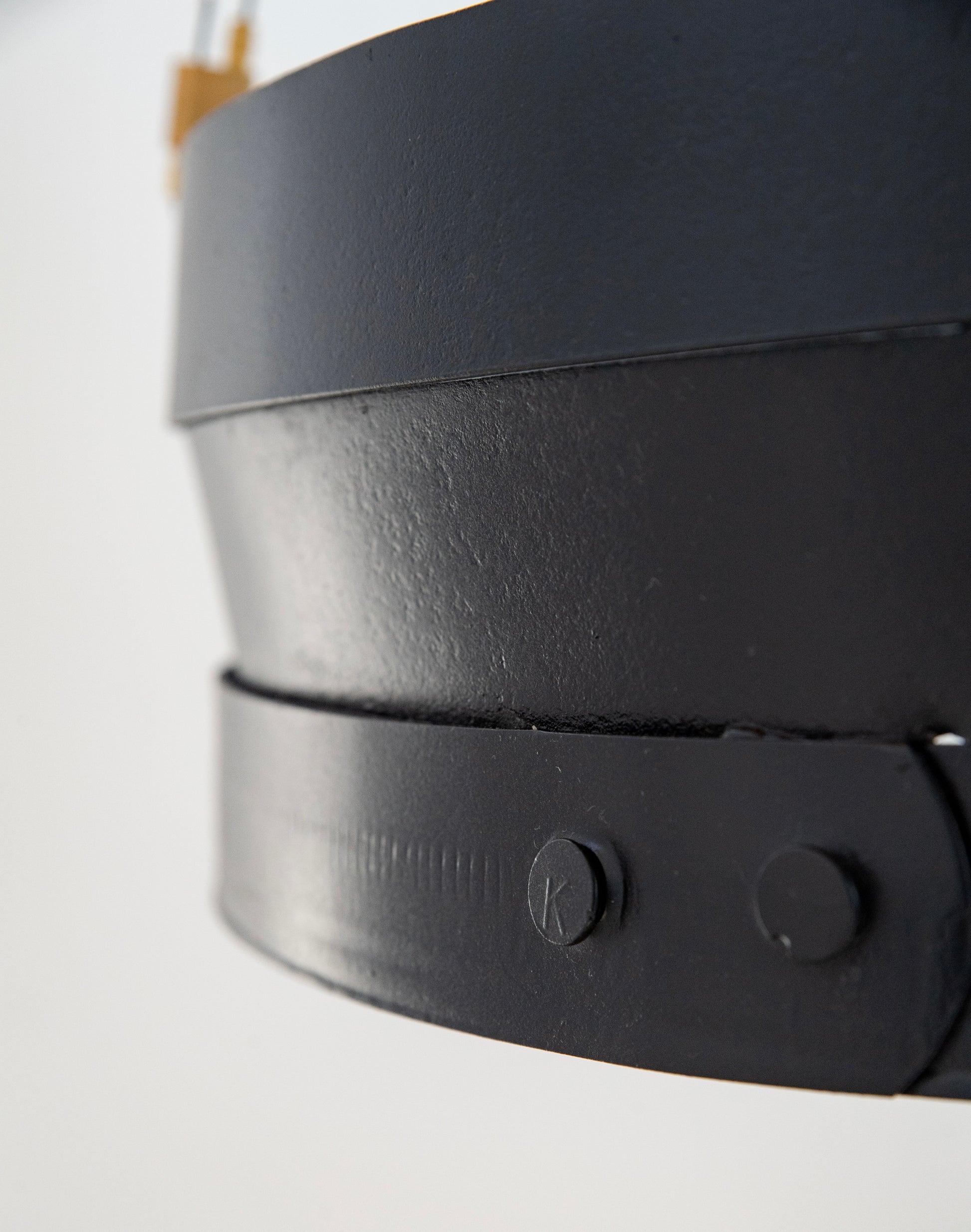 A blend of industrial modern design and sustainable craftsmanship, this chandelier is crafted from reclaimed beer barrel rings from Hardywood Brewery, located in Richmond, Virginia. Featuring a sleek painted black satin finish, complemented by elegant brass hardware, this three-tiered design creates a bold yet refined presence, offering a unique light fixture that adds character and style to any room.